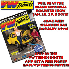 VW Trends will be at the Grand National Roadster Show in Pomona January 28th, 29th, & 30th! We’ll have a huge booth inside Building 9. Even better, on Saturday January 29th, VW Trends cover model Shannon Rae will be in our booth giving out autographed EMPI/VW Trends posters of our first cover! Come check out all the VWs and make sure to stop by the booth and say hi! In the meantime, go to www.vwtrendsmagazine.com to subscribe, get some swag, or just say hi!